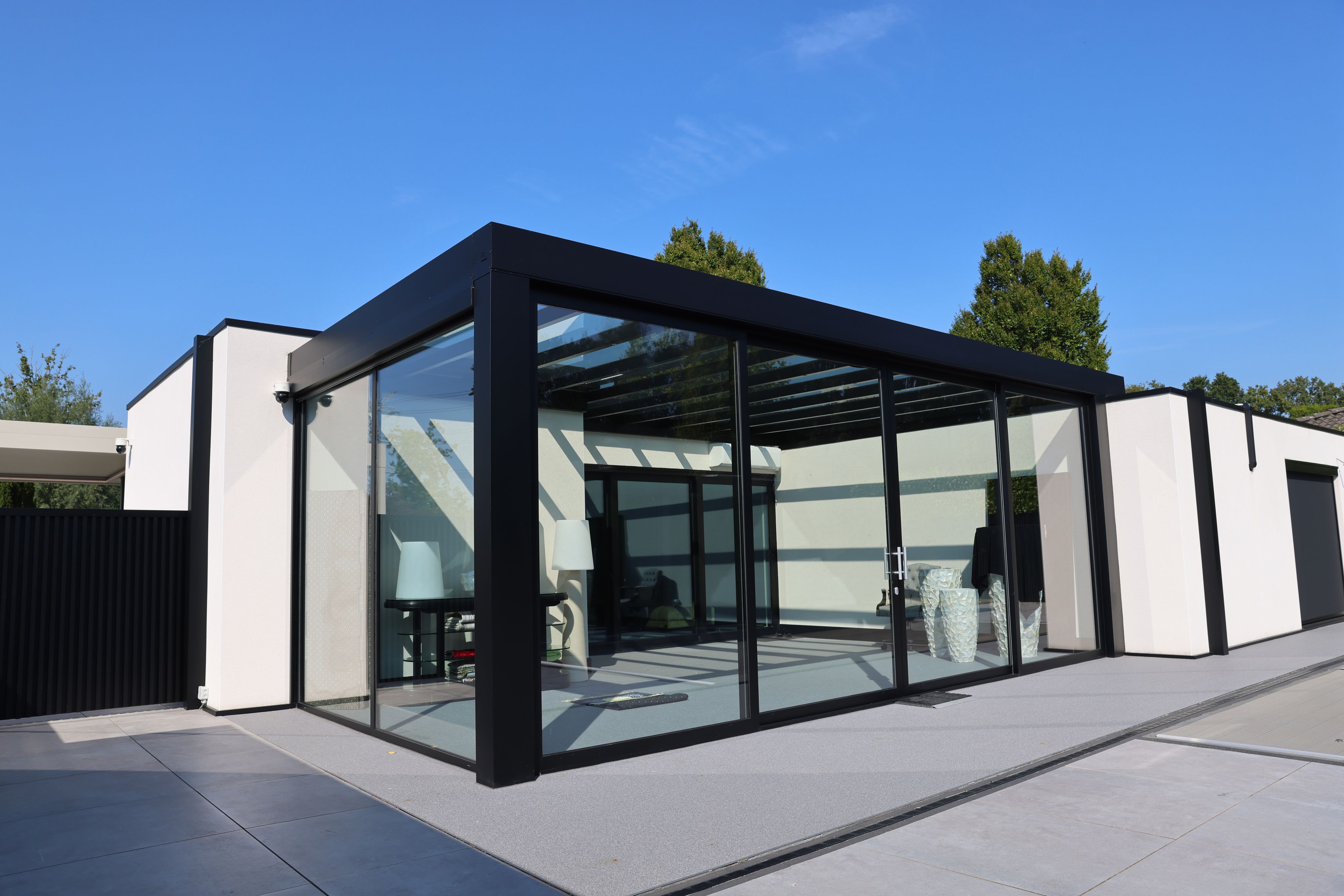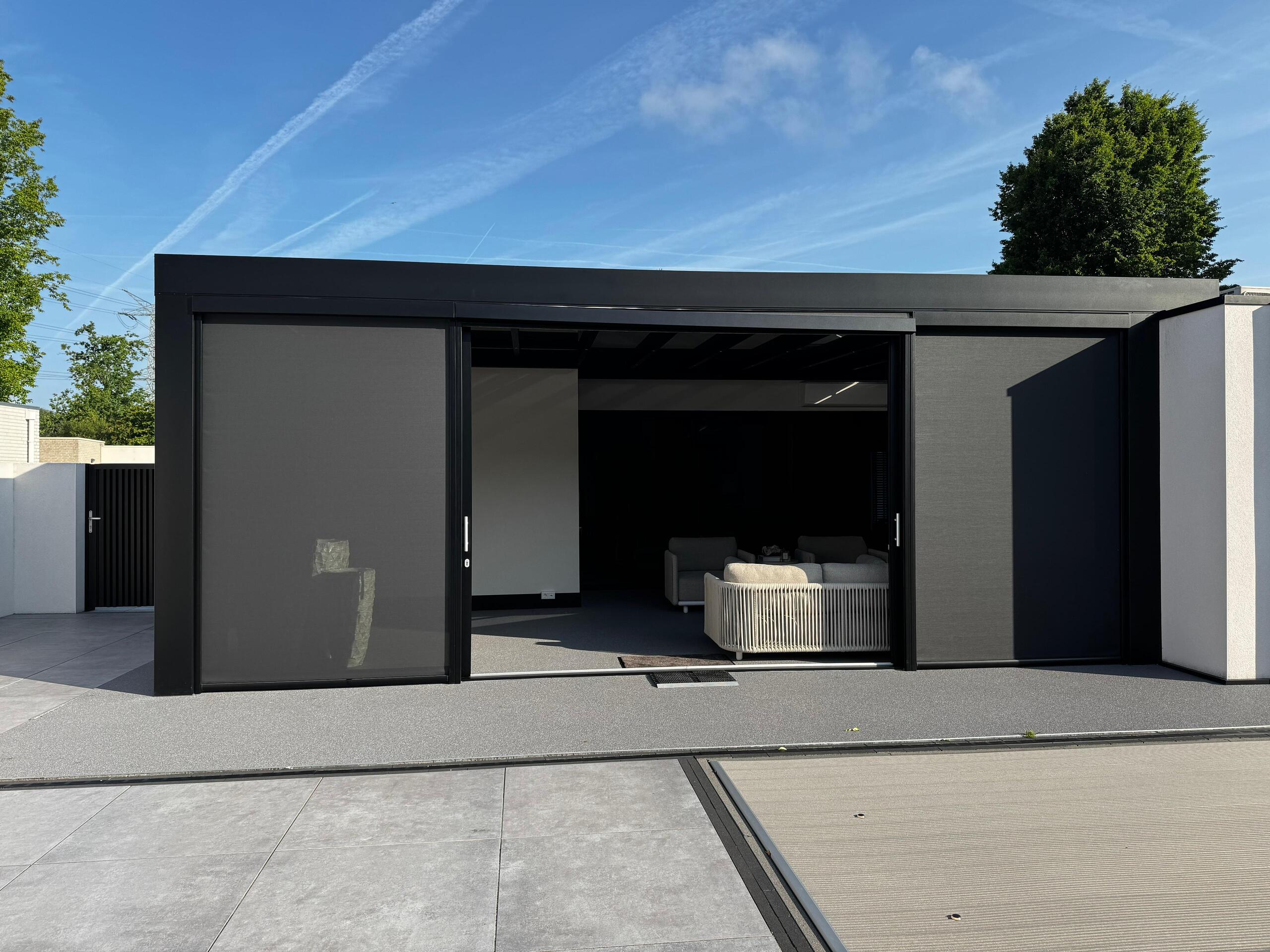 BL-CUBE belichaamt een robuust ontwerp dat zowel stoerheid als elegantie uitstraalt. Met een bijna onzichtbare dakhelling is deze overkapping werkelijk een pronkstuk.