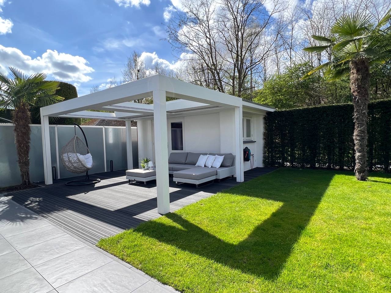 Geniet het hele jaar door van uw tuin met een lamellendak op maat. Beschutting bij regen, zon wanneer u wilt. Perfect voor elk seizoen!