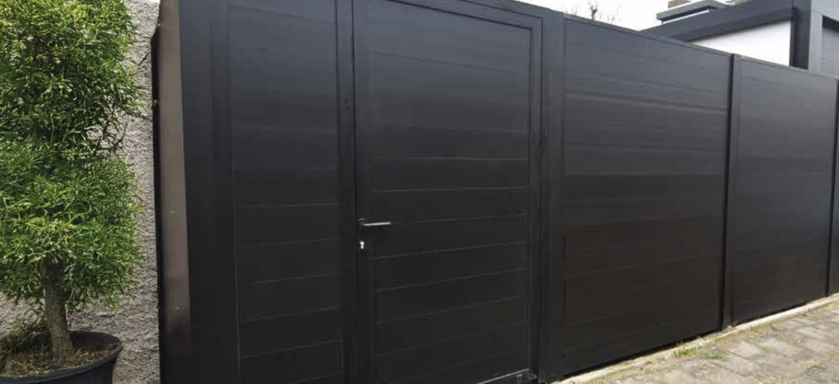 Aluminium schuttingen op maat met of zonder poort. Strak design, duurzaam en onderhoudsarm – dé moderne oplossing voor privacy in je tuin.